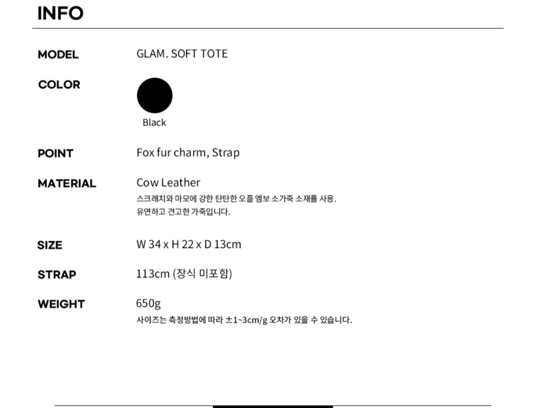 사이즈는 34×22×13 이며 색상은 블랙 1가지만 있습니다.
