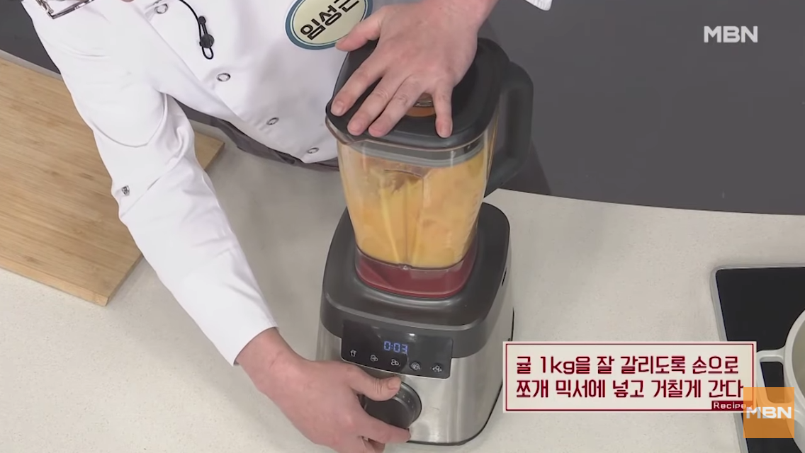 - #3. 귤 1kg을 잘 갈리도록 손으로 쪼개 믹서기에 넣고 거칠게 갈아줍니다.